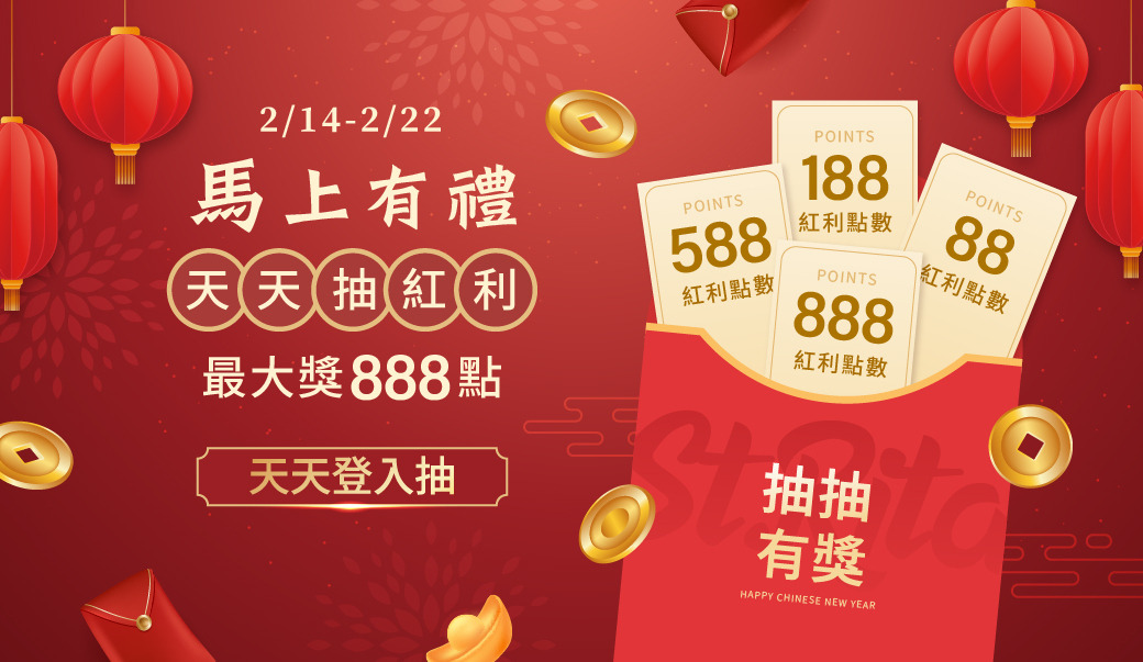 登入會員就抽紅利點數,有機會抽中 #888點